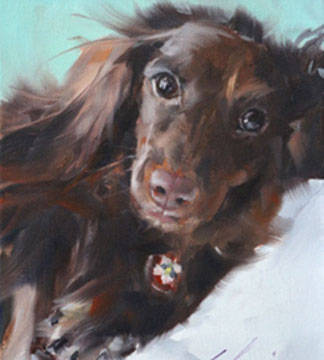 Most of the portraits I paint are done from the photos provided by the client. Send me as many as you can as it is helpful when choosing the best photo for the portrait, however, I only work from the one photo chosen. If the portrait is to be of more than one pet I can compose the painting from single photos of each pet. Let me know if you have a favorite photo and I will let you know if it is suitable to work from.